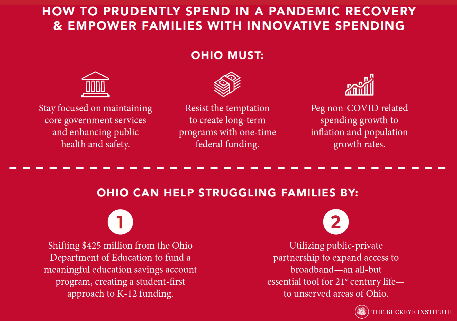 Using innovative spending, Lawson also urged lawmakers to shift $425 million to fund a meaningful education savings account program, which would take a student-first approach to K-12 funding, and to utilize public-private partnership to expand access to broadband—an all-but essential for tool for 21st century life—to unserved areas of Ohio.